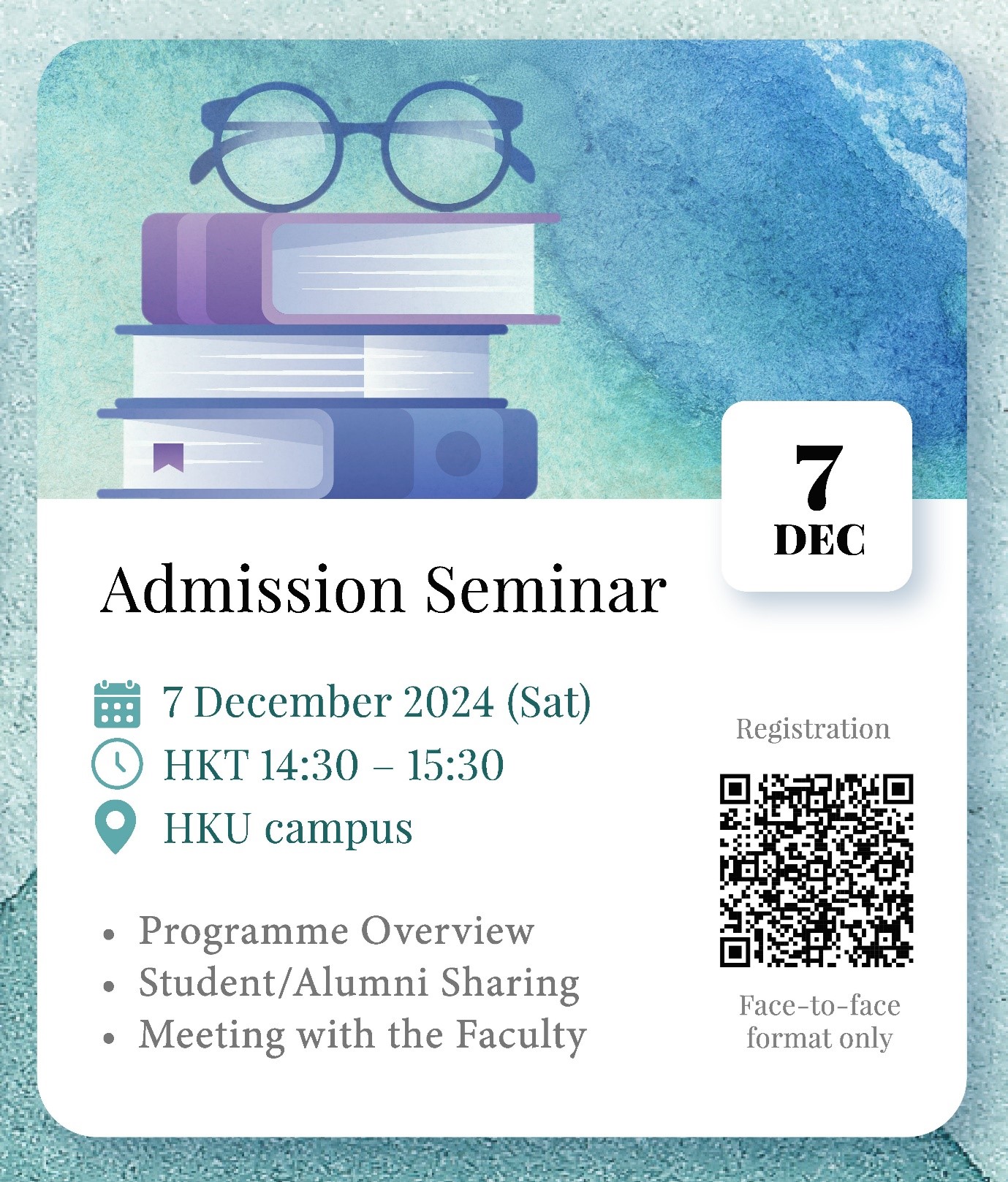 The Admission Seminar for September 2025 entry will be held with the following details: