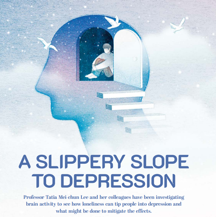 Professor Tatia Mei-chun Lee and her colleagues have been investigating brain activity to see how loneliness can tip people into depression and what might be done to mitigate the effects HKU BULLETIN: A Slippery Slope to Depression November 2024 Print